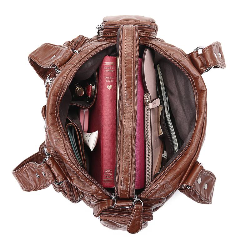 Angel Kiss Naisten Pehmeä Nahkainen Monitaskuinen Moottoripyörälaukku Olkalaukku Crossbody Bag Käsilaukku