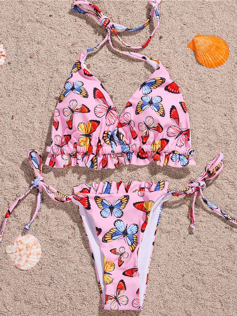 Butterfly Animal Painatus Halter Tie Summer Beach Swimwear Naisten Bikinit