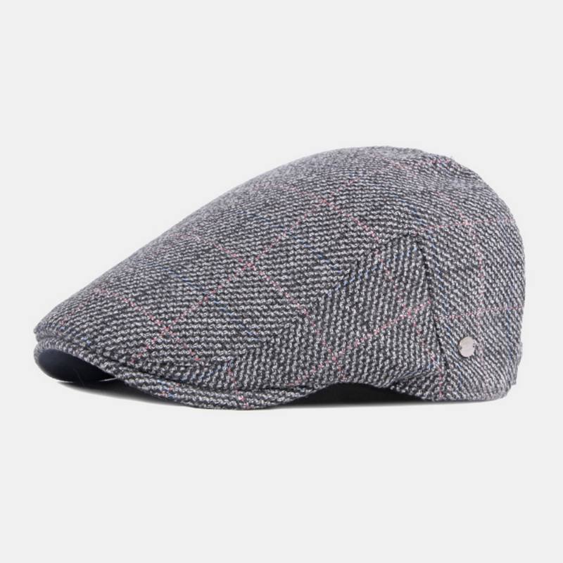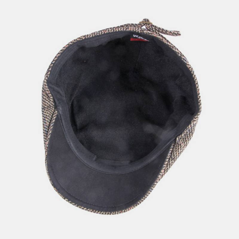 Miehet Puuvillanvärinen Ristikkokuvio Ja Samettilämpimät Baretit Brittiläinen Retro Rento Aurinkovarjo Eteenpäin Hat Sanomalehtihattu