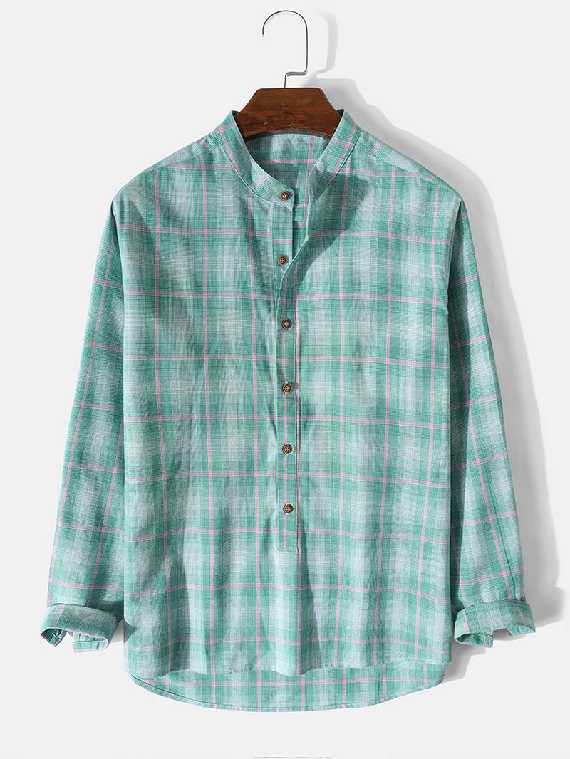 Miesten 100% Puuvillaa Plaid Stand Kaulus Pitkähihaiset Henley Paidat