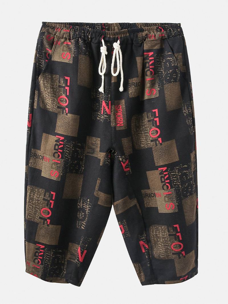 Miesten Abstrakti Painatusti Kiristysnyöri Etniseen Tyyliin Vapaat Housut Taskulla