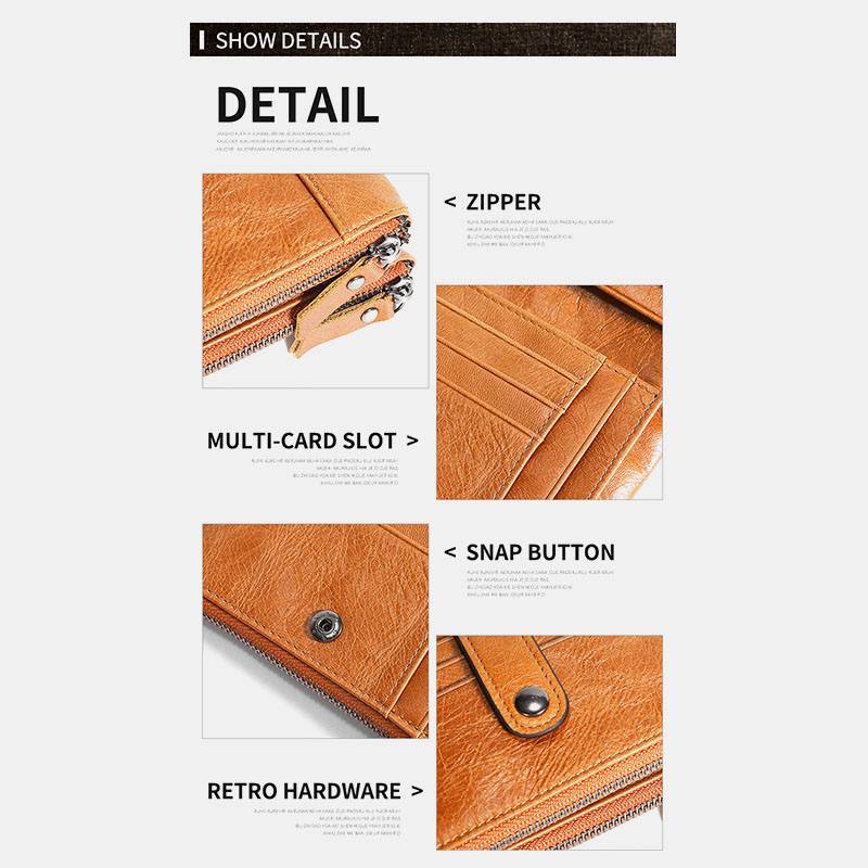 Miesten Aidosta Nahasta Valmistettu Antimagneettinen Kaksinkertainen Vetoketjullinen Lompakko 15 Korttipaikkaa