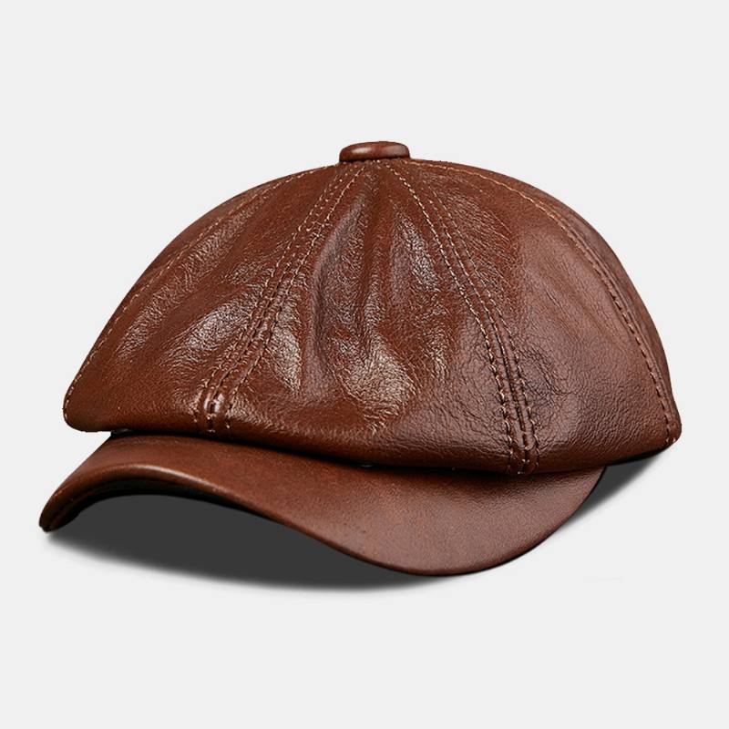 Miesten Aitoa Nahkaa Lehmännahkaa Retromuoti Kahdeksankulmainen Hattu Lehtipoikahattu Barettihattu Tasainen Hattu