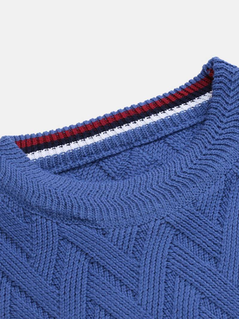 Miesten Chevron-neulottu yksivärinen pyöreä kaula Slim Fit rento villapaita