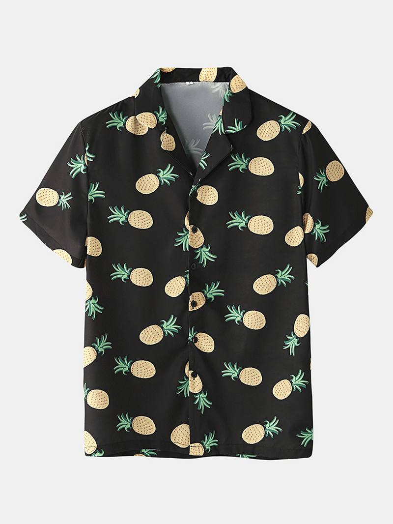 Miesten Funny Cartoon Ananas Print Black Pyjama Set Summer Home Sleepwear
