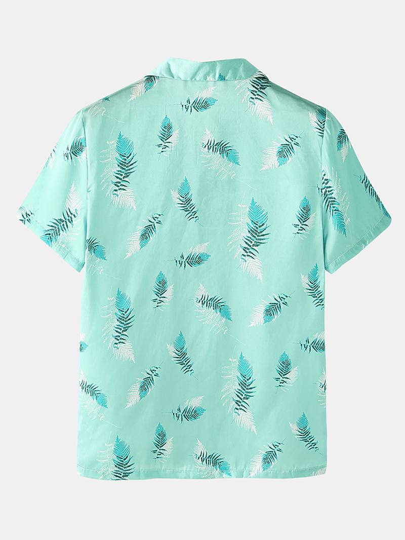 Miesten Leaves Print Sleepwear Revere Collar Lyhythihainen Koti Pyjama-setti