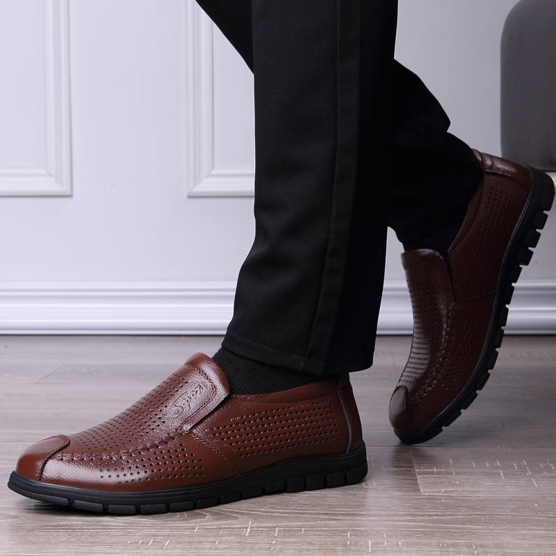 Miesten lehmännahkaa hengittävä ontto, pehmeä pohja, suljettu varvas, vapaa-ajan yrityskengät