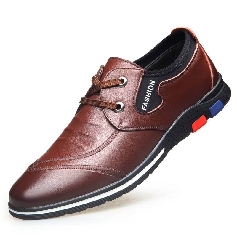 Miesten lehmännahkaa hengittävä, pehmeä pohjallinen nauhoitettu mukavat vapaa-ajan yrityskengät