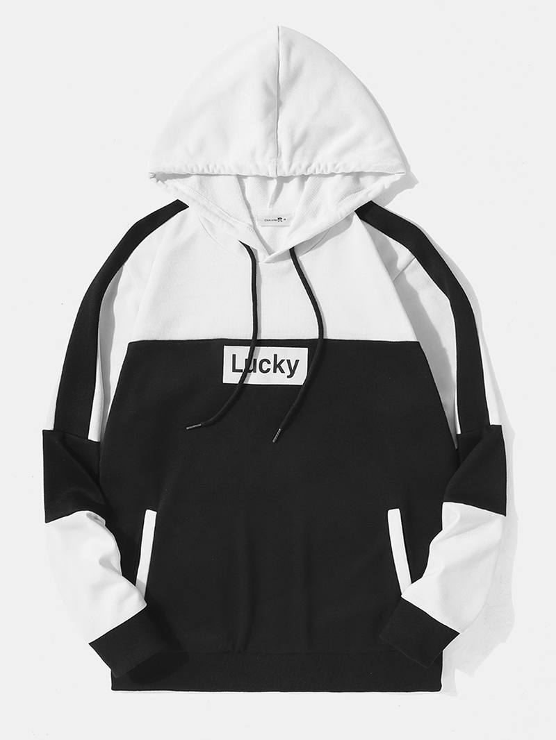 Miesten Lucky Letter Patchwork Taskut Kiristysnyörillä Rento Hupullinen Paita