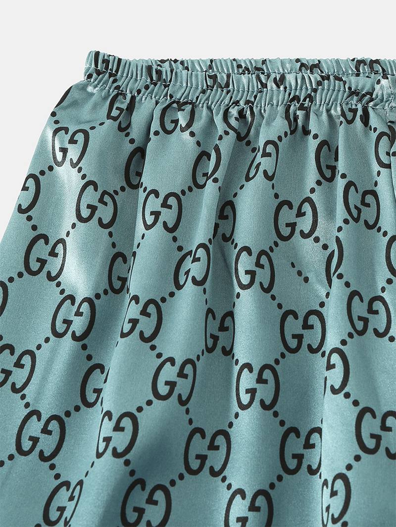 Miesten printti tekosilkki rintatasku lyhythihainen joustava vyötärö Ohut kotipyjamasetti