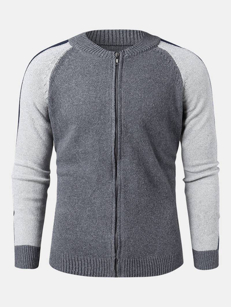 Miesten Patchwork Takana Kirjekuvioinen Vetoketju Edessä Neulotut Rennot Neuletakit