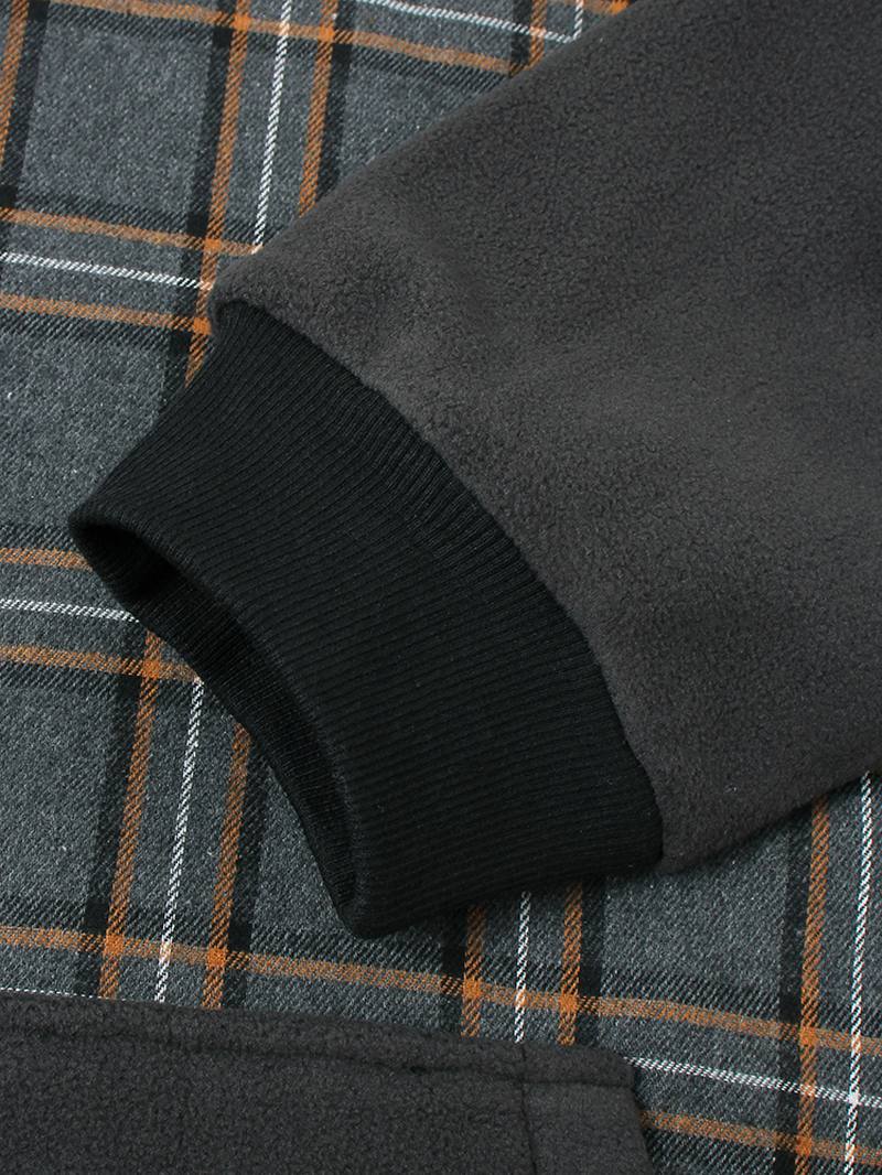 Miesten Puuvillapatchwork Tartan Check Pitkähihaiset Rento Hupparit Joissa On Kengurutasku