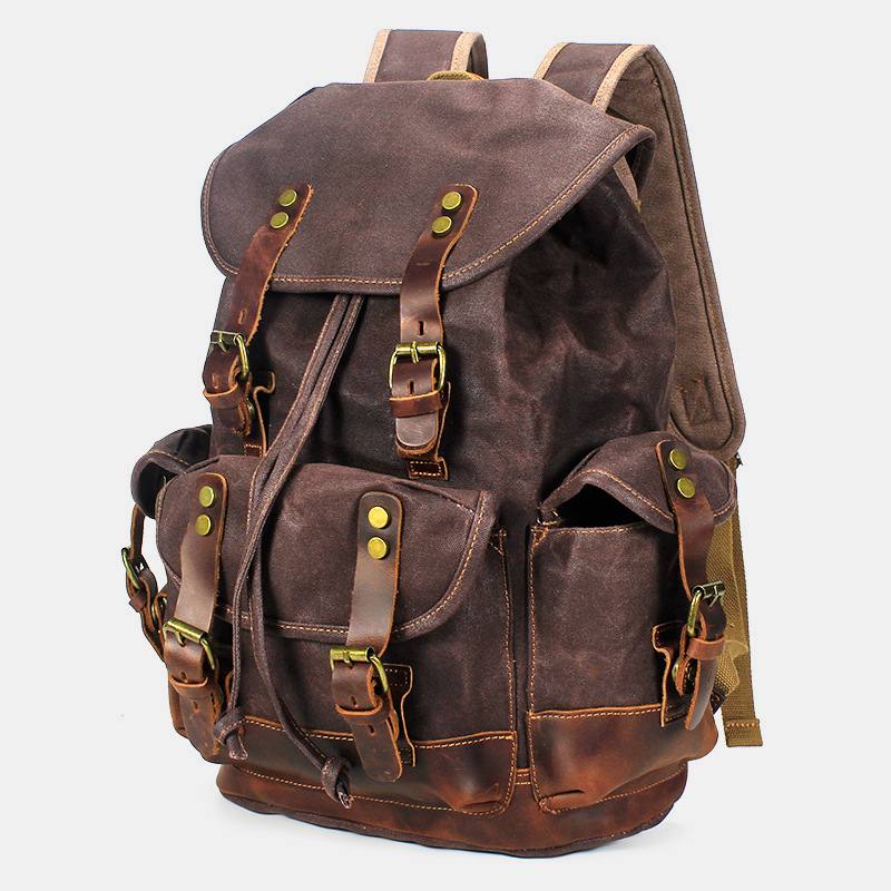 Miesten Vintage Canvas -nahkainen Kulutusta Estävä Varkaudenesto Vedenpitävä Reppu Vapaa-ajan Matkalaukku