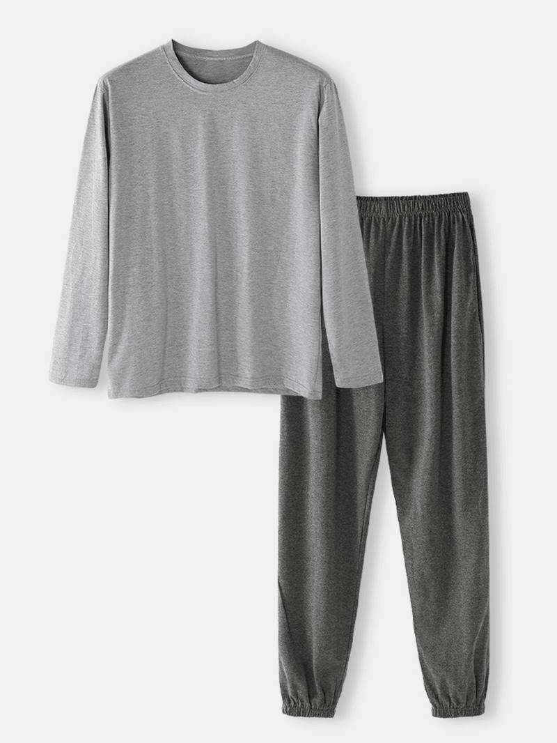 Miesten Yksivärinen Puuvilla Pyöreä Kaula-aukkoinen Pitkähihainen T-paita Kotiin Löysä Pyjamasetti