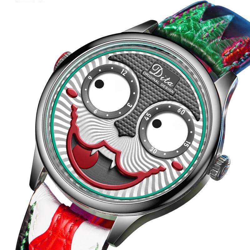Muoti Creative Joker kellotaulu nahka/ruostumaton teräsranneke Persoonallinen seos miesten kvartsikello