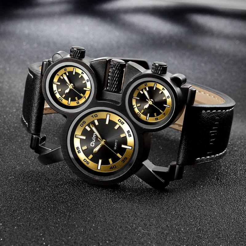 Muoti rento nahkainen miesten vintage-kello koristeltu moniaikavyöhykekello, valaisevat osoittimet kvartsikello