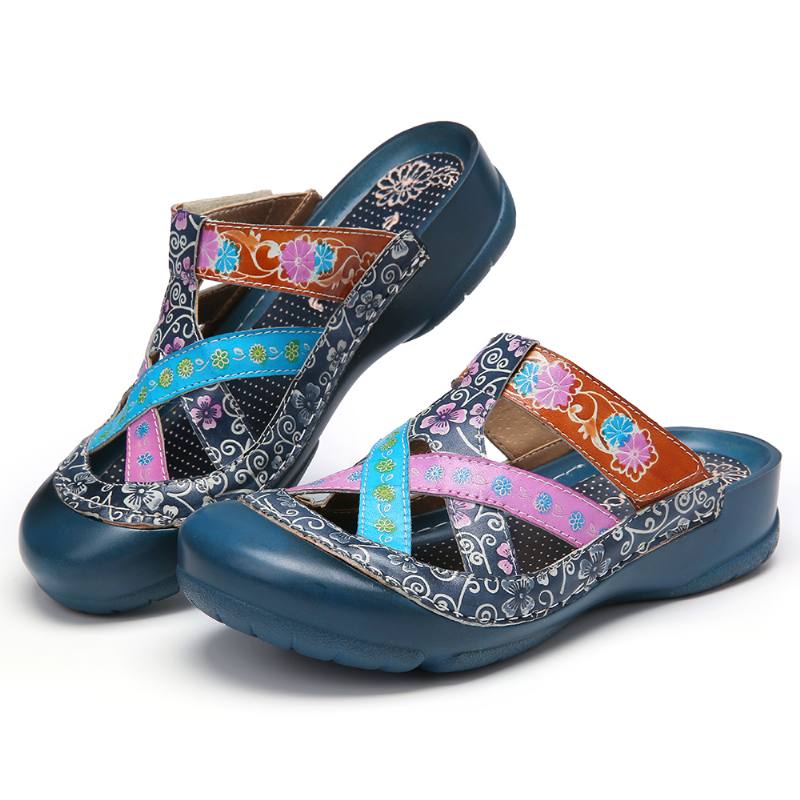 Nahkainen Kukkainen Ristikkäin Säädettävä Hihna Pukeutuvat Muulit Puukengät Litteät Liukumäki Sandaalit