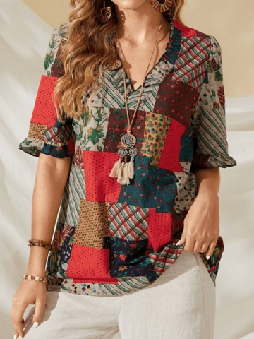 Naisten 3d Kissan Rintakuvio Patchwork Raglan Sleeve Pyöreä Pääntie Causal T-paita