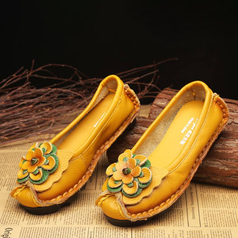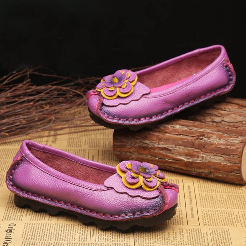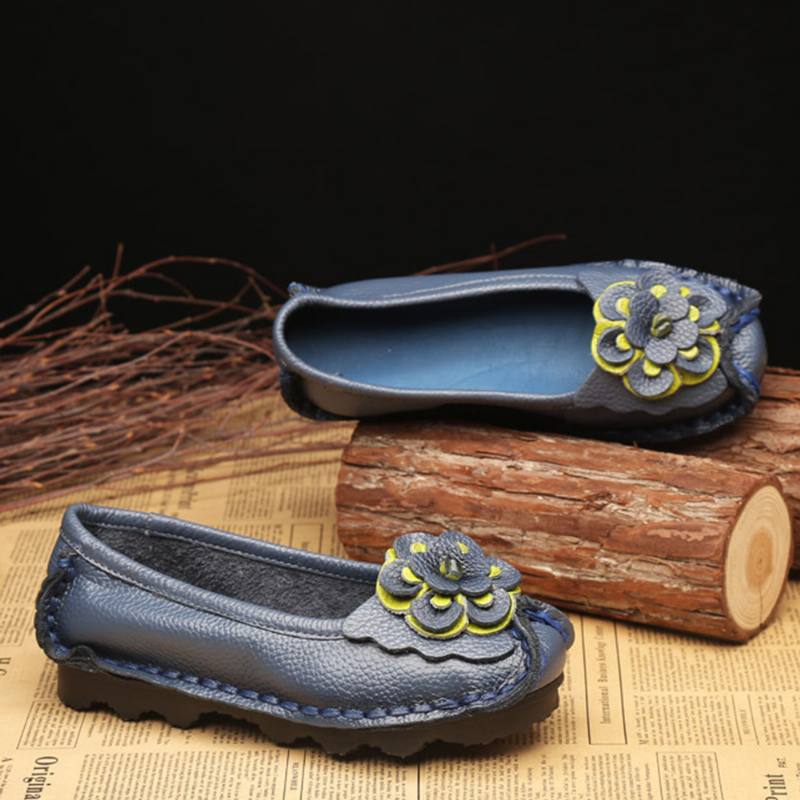 Naisten kengät Rento mukavat kukkakuvioiset nahkataskut