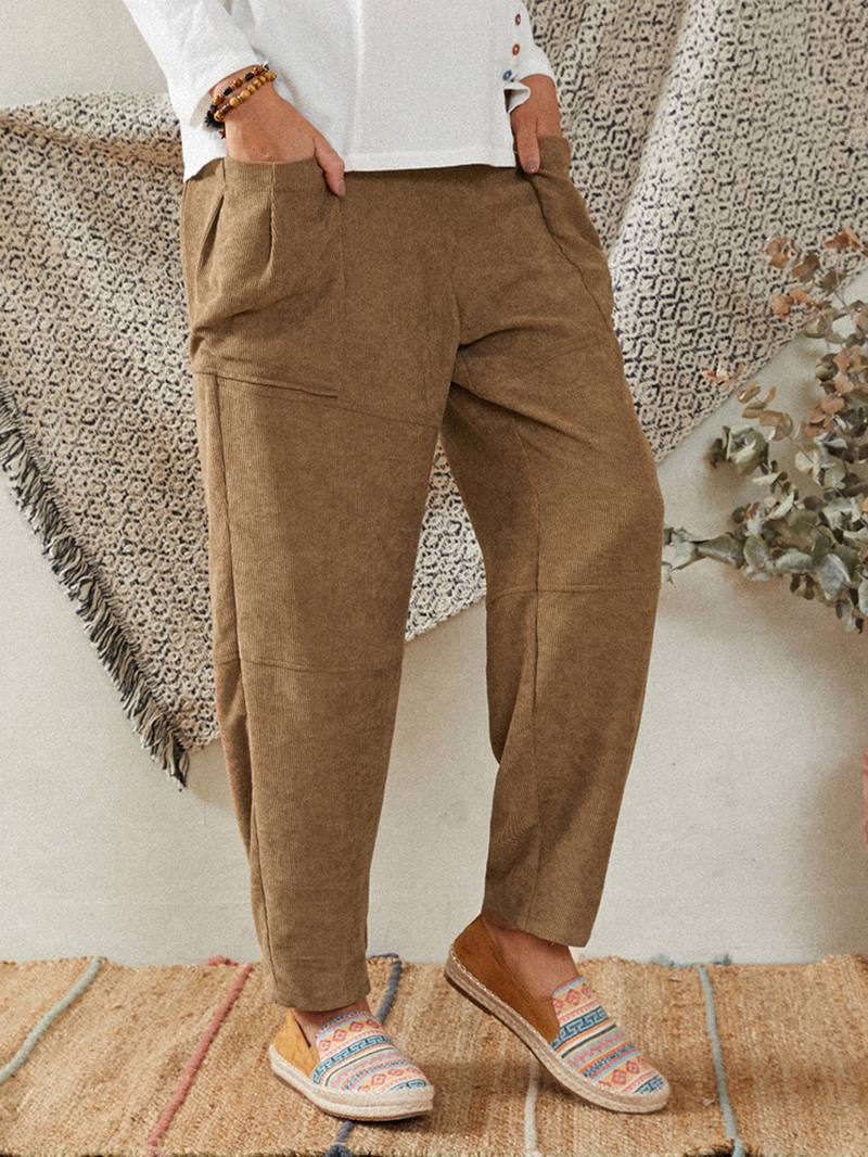 Naisten khaki vakosamettisivutaskut nilkkahousut