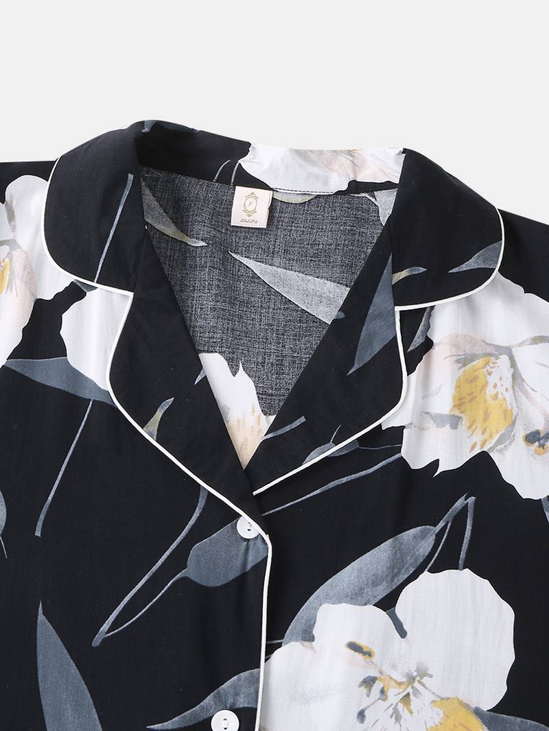 Naisten kukkakuvioinen Revere-kaulus pitkähihainen mukava unipaita kontrastisidoksella