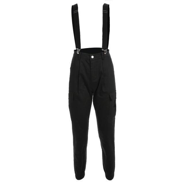 Naisten Mustat Streetwear Housut Korkea Vyötärö Säädettävä Strrp Cargo Pants Naisten Muoti Lyijykynä Housut Housut