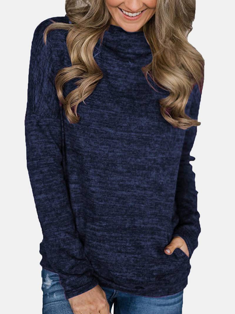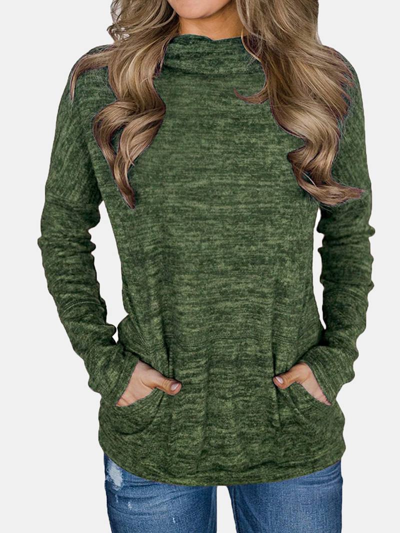 Naisten Neulotut Pitkähihaiset Rennot Neulepuserot Joissa On Tasku