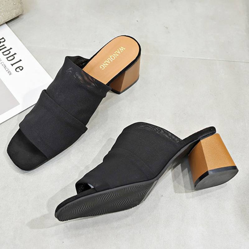 Naisten Peep Toe Mesh yksiväriset paksut kantapääpumput