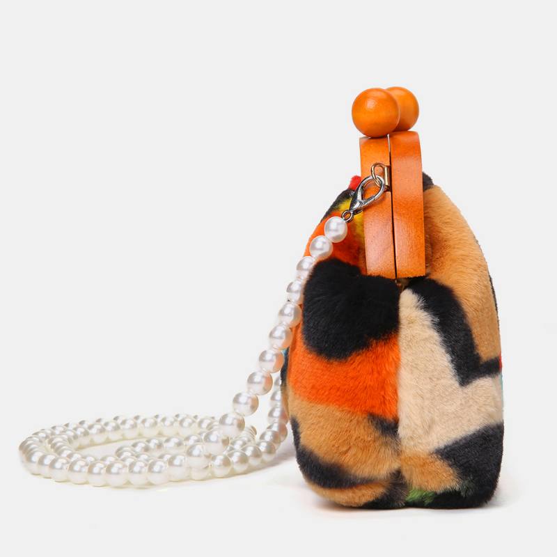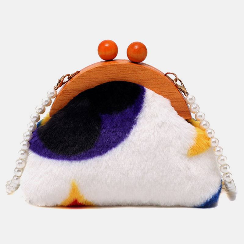 Naisten pehmoinen solmio-värjäys Patchwork Pearl Chain -olkalaukku Crossbody-laukku