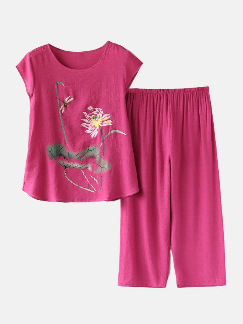 Naisten Plants Painatus Plus Size Pyjama Pehmeät Hengittävät Kesäasut