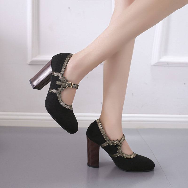 Naisten plus-koon ompelevat paksut kantapääpumput