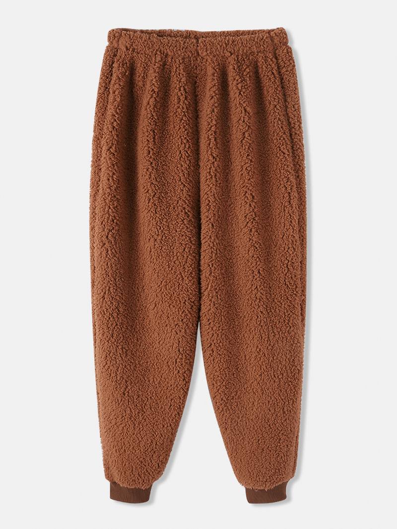 Naisten Pörröinen Pehmeä Pyöreäkauluksinen collegepaita Löysä koti, rento kaksiosainen pyjamasetti