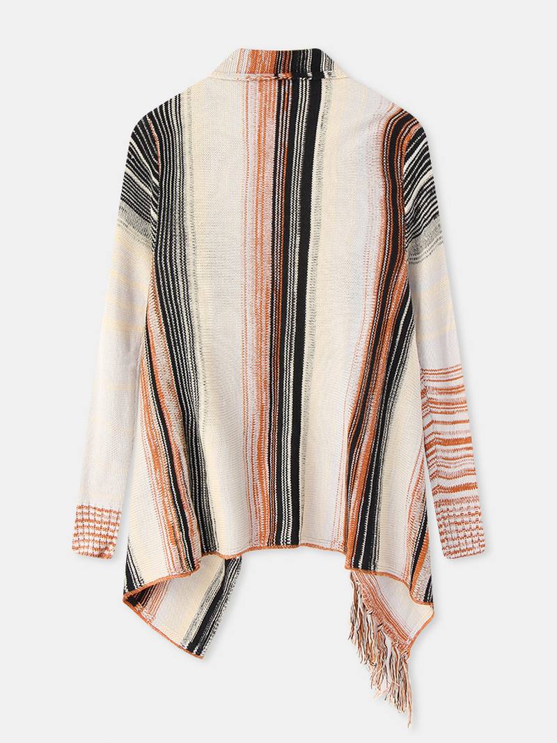 Naisten Raidallinen Tessel Avoin Edessä Neule Pitkähihainen Epäsäännöllinen Helma Neuletakki