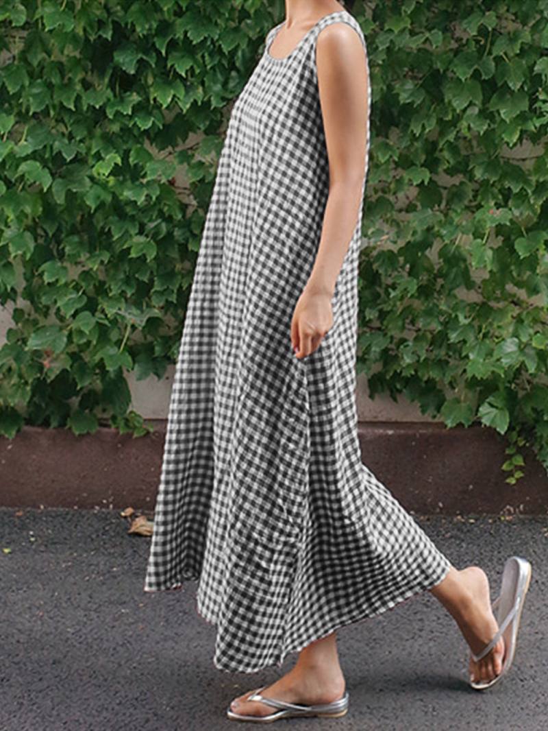 Naisten rento hihaton ruudullinen sivutasku, väljä maxi-mekko
