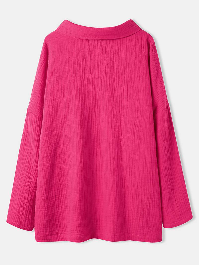 Naisten rento yksivärinen sivusylväinen pitkähihainen yksinkertainen yksinkertainen pusero