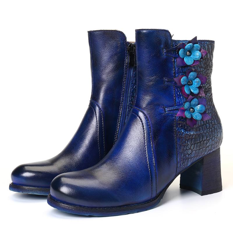 Naisten retro-käsintehdyt kukka-nahkaiset nilkkurit