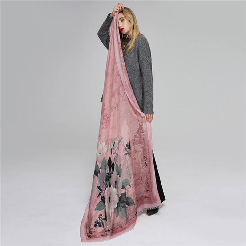 Naisten satiinipainatushuivit Hengittävä vintage-puuvilla- ja pellava-huivi