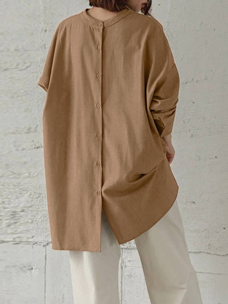 Naisten yksivärinen pyöreä pääntie, puolihalkaistut rennot pitkähihaiset puserot