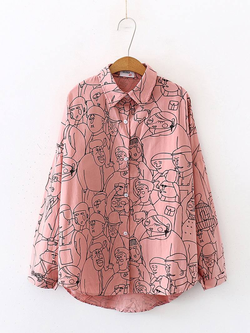 Pitkähihainen rintanapillinen kuvioprintti Löysät vapaa-ajan paidat naisille
