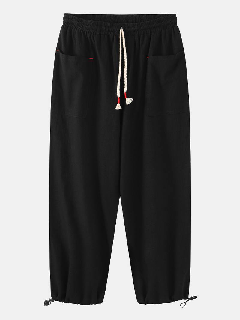 Puuvilla Miesten Yksivärinen Tasku Joustava Vyötärö Kiristysnyörillä Vapaat Housut