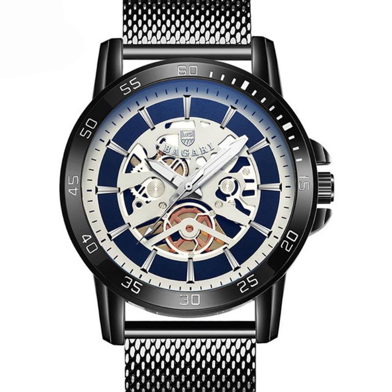 Rento Tyyli Mekaaninen Ulkonäkö Kvartsikellot Mesh Steel Miesten Rannekello