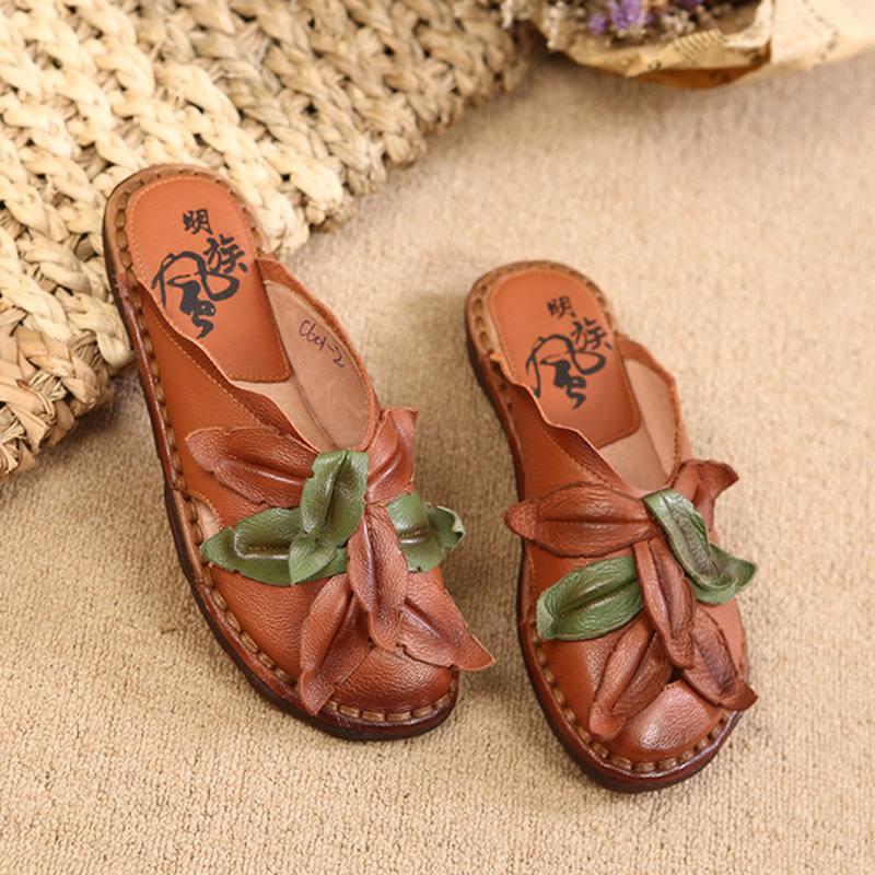Retro Flower Rento Aitoa Nahkaa Tossut