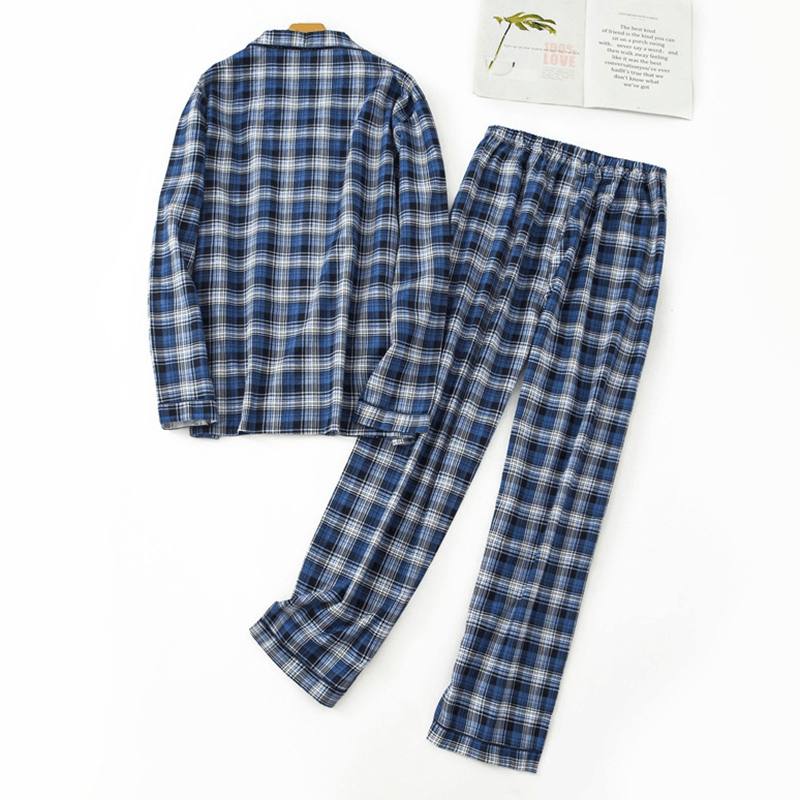 Ruudullinen Puuvillainen Lämmin Pyjamasetti