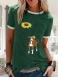 Sarjakuva Kukkakukainen Koirapainatusti Lyhythihainen Rento Löysä T-paita