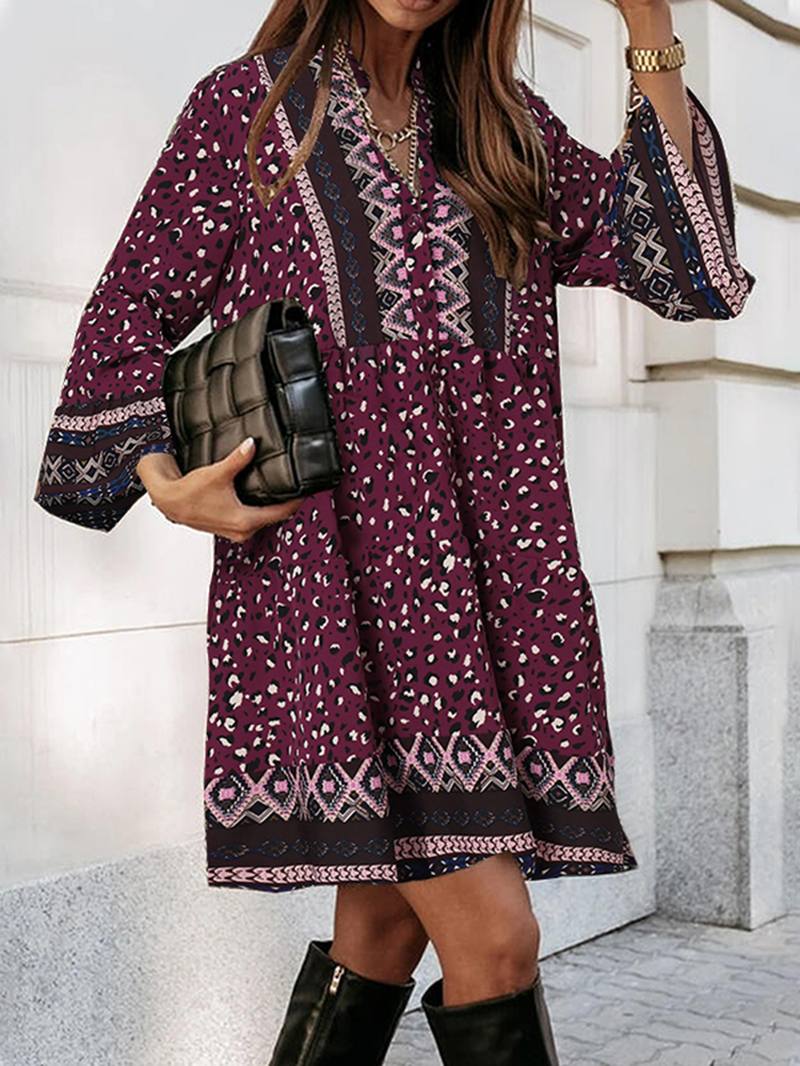 V-pääntie, täyshihainen kukkakuvioinen boheemi löysä mekko naisille